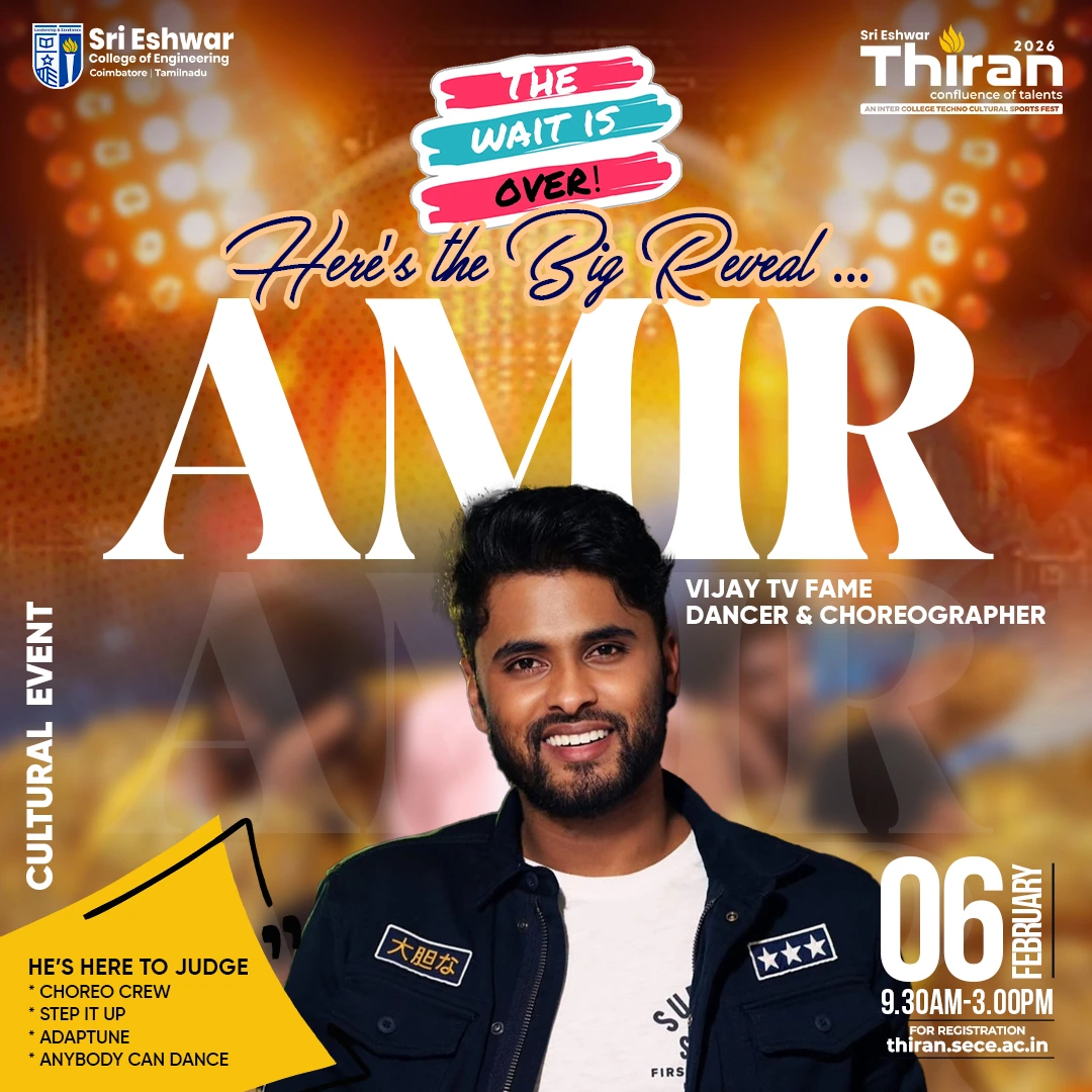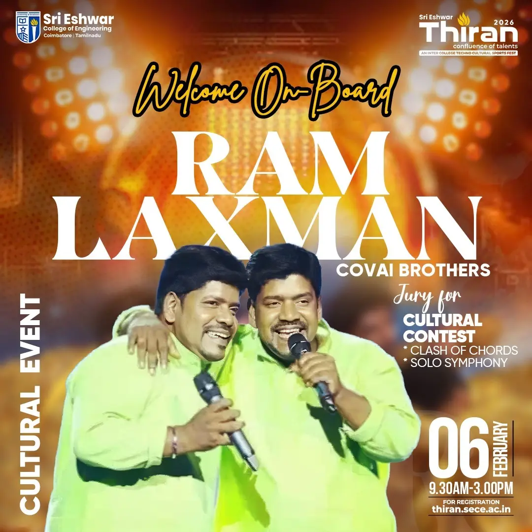 Sri Eshwar’s mega inter-college techno-cultural-sports fest is on its way! Students from all across the nation will be coming in to showcase their skills in every aspect – a confluence of talents in the truest sense! Participate in hackathons, attend workshops or masterclasses or test your skills in exciting tech and non tech challenges. It’s going to be non-stop tech-frenzy! At the end of each day, vibe with your friends as you enjoy mega celebrity performances. It’s going to be awesome!