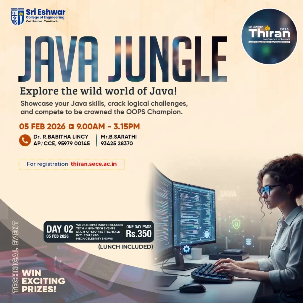 Showcase your Java skills, crack logical challenges, and compete to be crowned the OOPS Champion.