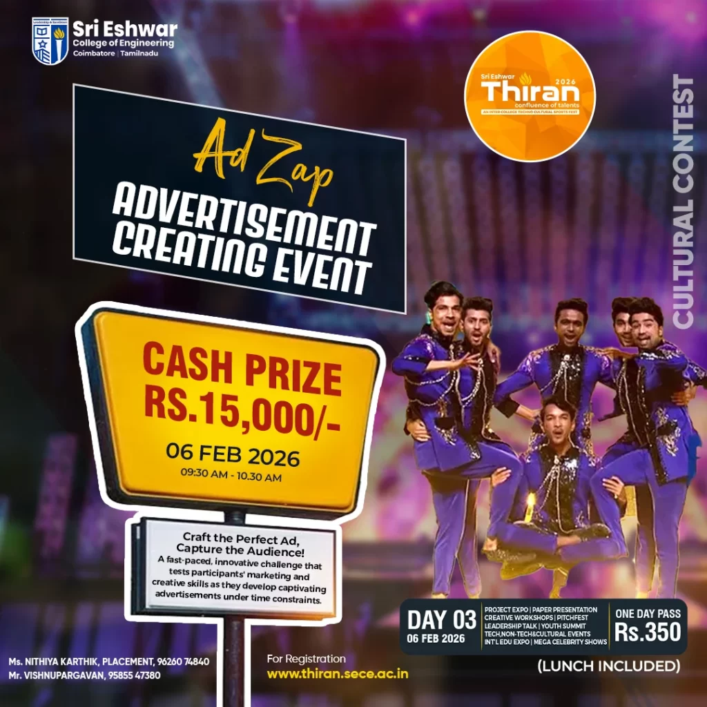 AD Zap -Advertisement Creating Event https://thiran.sece.ac.in/ad-zap-advertisement-creating-event/ https://thiran.sece.ac.in/ad-zap-advertisement-creating-event/#respond Wed, 11 Dec 2024 02:07:30 +0000 https://thiran.sece.ac.in/?p=18263