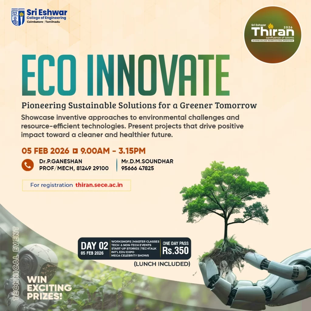 Eco Innovate : Pioneering Sustainable Solutions for a Greener Tomorrow https://thiran.sece.ac.in/eco-innovate/ https://thiran.sece.ac.in/eco-innovate/#respond Fri, 06 Dec 2024 11:27:26 +0000 https://thiran.sece.ac.in/?p=17724