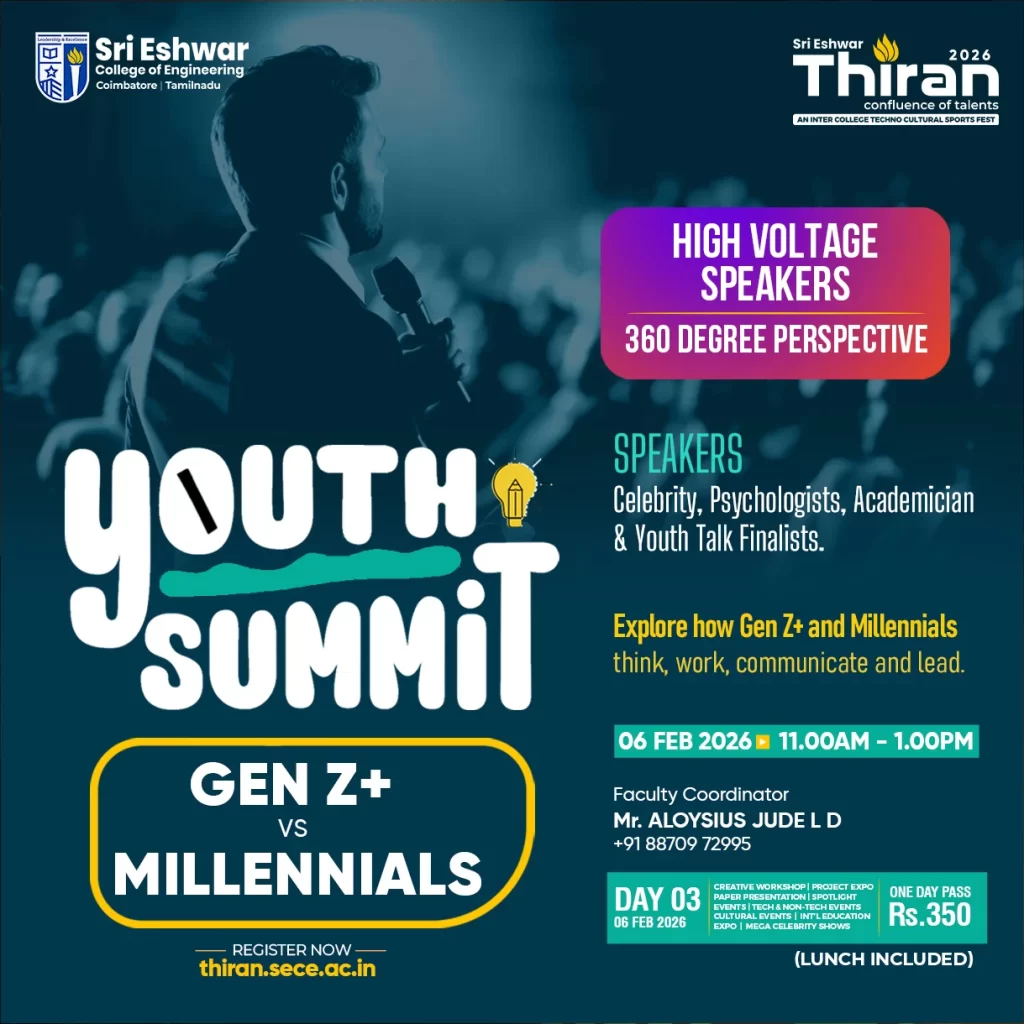 Get ready for an electrifying session where two generations meet, question, and collaborate!The Youth Summit 2026 brings together a dynamic lineup offering a complete 360° perspective on the theme Gen Z+ vs Millennials